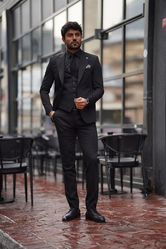 Guild Siyah Yelekli Takım Elbise Slim Fit
