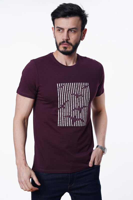 Guild 8012 Slim Fit Bisiklet Yaka Mürdüm T-Shirt