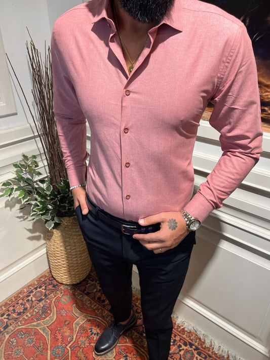 Guild Slim Fit Oxford Dar Kesim Açık Bordo Gömlek 7041