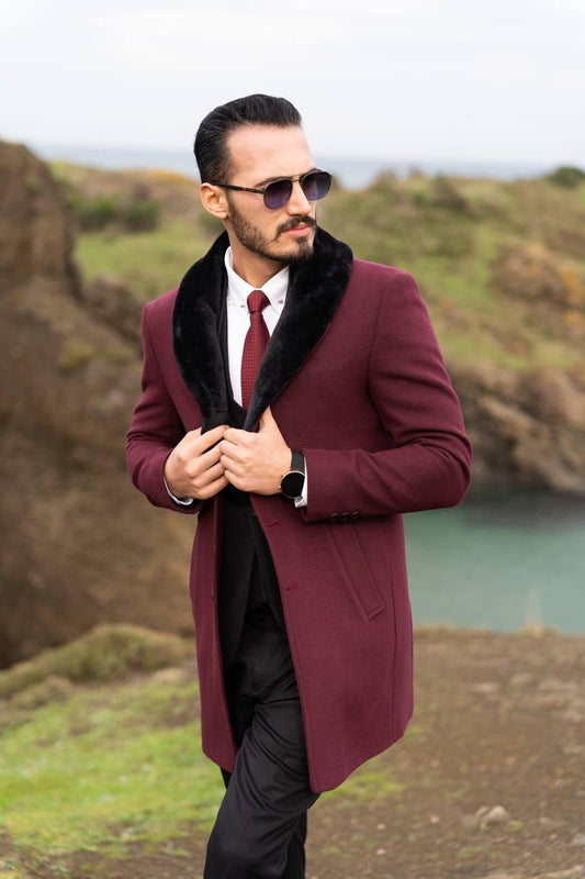 Guild Hagen Yaka Kürklü Kaşe Bordo Kaban