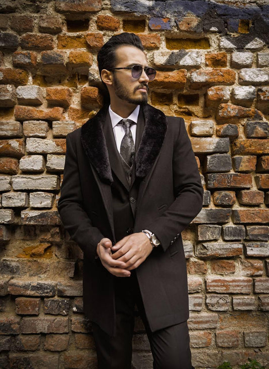 Guild Hagen Yaka Kürklü Kaşe Siyah Kaban