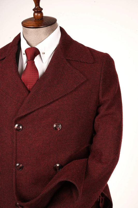 Guild Kavala Kruvaze Diagonal Bordo Yün Kaban