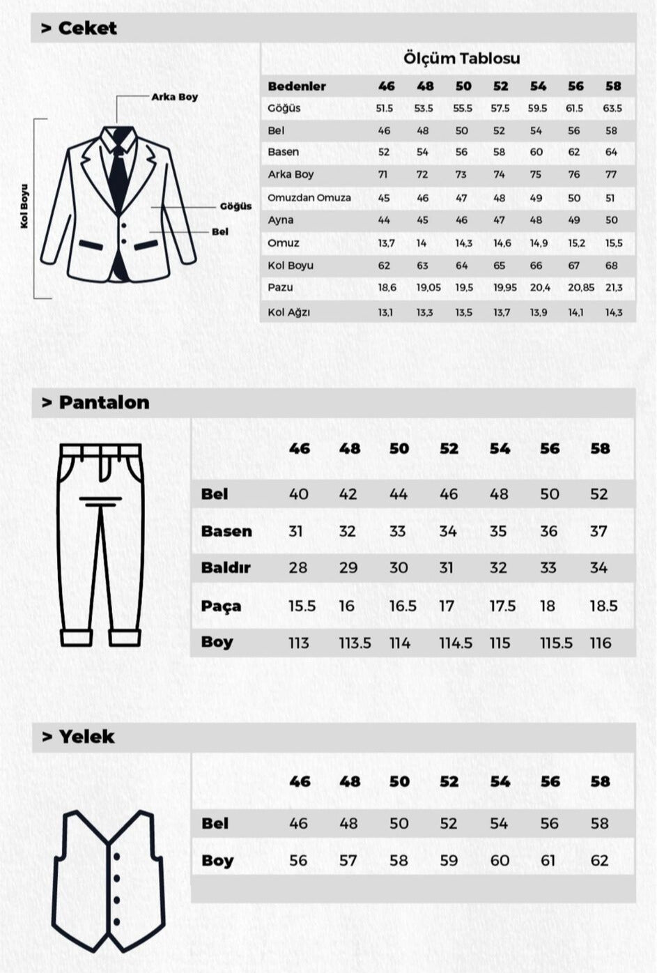Aşağıda ki beden tablomuzu inceleyerek size uygun bedeni seçebilirsiniz.